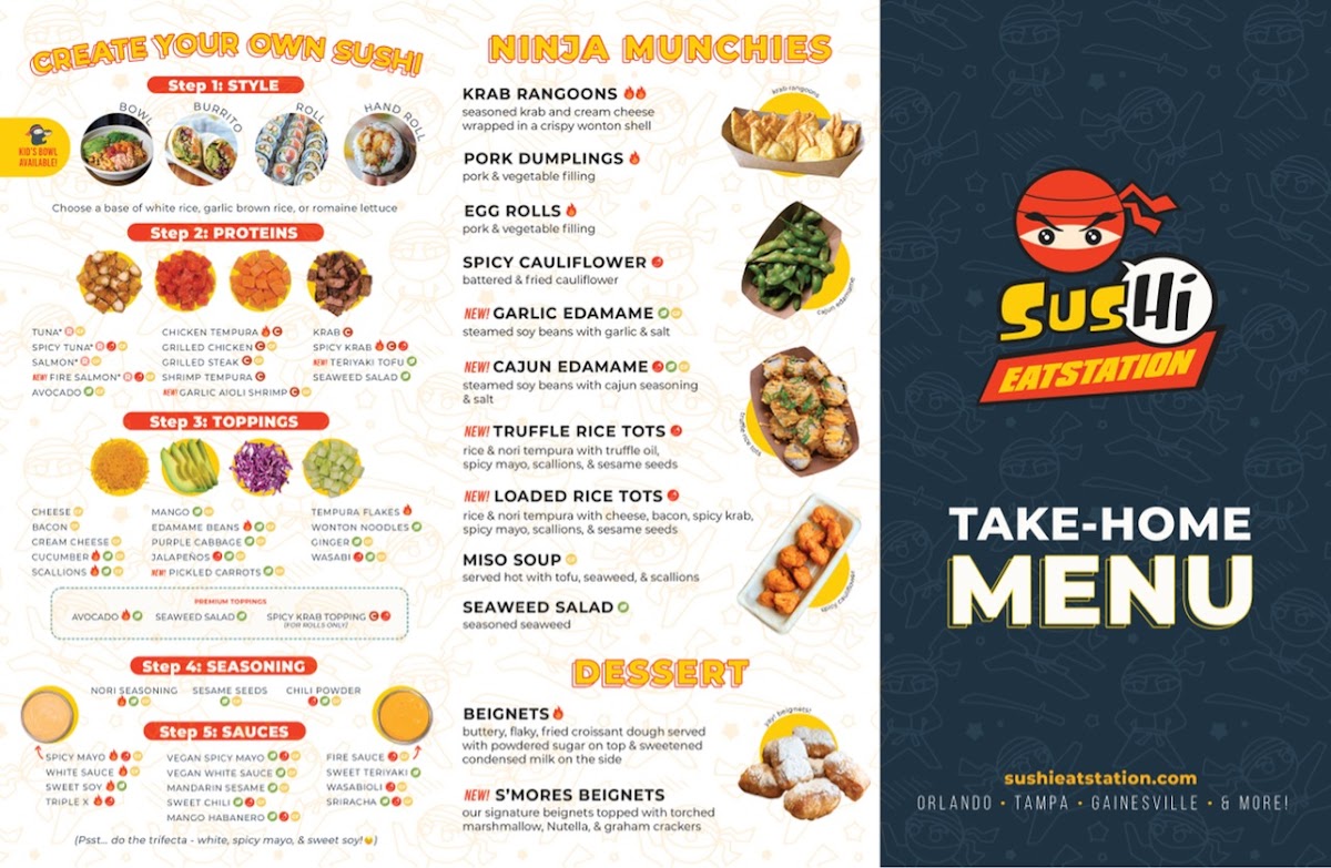 Introducing the menu at Sus Hi Eatstation - Millenia, where the vibrant fusion of traditional and contemporary Japanese dining comes alive in Orlando. Located at 4693 Gardens Park Blvd, this clever eatery specializes in customizable bowls, rolls, and burritos that cater to every palate. Diners can create their own culinary masterpieces with a variety of bases, proteins, and toppings, ensuring a unique flavor experience.